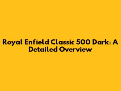 Royal Enfield Classic 500 Dark: A Detailed Overview