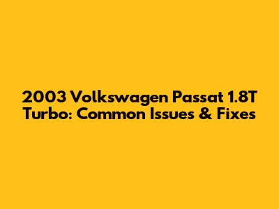 2003 Volkswagen Passat 1.8T Turbo: Common Issues & Fixes