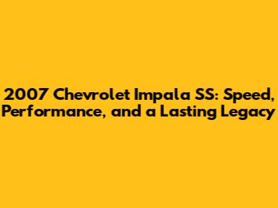 The 2007 Chevrolet Impala SS is a performance sedan that blends practicality with a touch of muscle. For those of you interested in its acceleration capabilities, the 2007 Chevy Impala SS 0-60 time is a key figure. This article delves into the specifics of the Impala SS, exploring its performance metrics, design elements, and overall appeal.