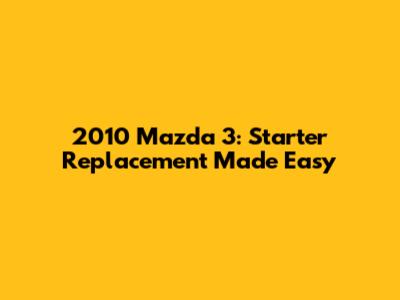 2010 Mazda 3: Starter Replacement Made Easy