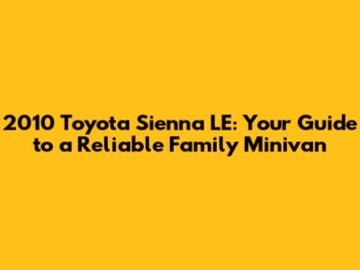 Hey there, fellow car enthusiasts! Let's dive into the 2010 Toyota Sienna LE, a minivan that has become a staple in many families' lives. This article will be your go-to resource, covering everything from its features and performance to common issues and maintenance tips. Whether you're considering buying one or already own a 2010 Sienna LE, you're in the right place. We'll explore why this minivan continues to be a popular choice, offering insights to help you make informed decisions and keep your Sienna running smoothly. Get ready to explore the ins and outs of this reliable family hauler, and discover what makes the 2010 Toyota Sienna LE a standout in its class.