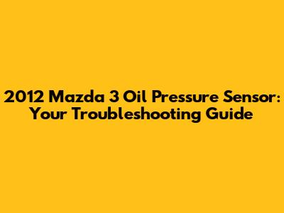 2012 Mazda 3 Oil Pressure Sensor: Everything You Need To Know