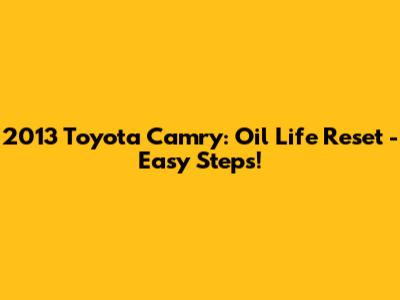 There you have it! Resetting the oil life indicator on your 2013 Toyota Camry is a straightforward process that can help you maintain your vehicle in excellent condition. By following these steps and keeping up with regular maintenance, you can ensure your Camry runs smoothly for years to come. Happy driving, and stay safe out there!