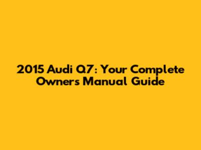 2015 Audi Q7: Your Complete Owner's Manual Guide