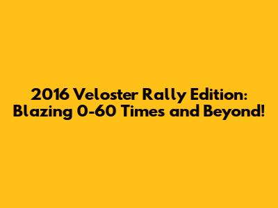 Hey car enthusiasts! Ever wondered about the 2016 Hyundai Veloster Rally Edition's performance, specifically its 0-60 mph sprint? Well, buckle up, because we're about to dive deep into what makes this hot hatch a real head-turner. The 2016 Veloster Rally Edition is more than just a car; it's a statement. With its unique three-door configuration and sporty design, it's clear this vehicle was built to stand out. But beyond its eye-catching looks, the Rally Edition packs a punch under the hood. The 0-60 mph time is a crucial metric for any performance car, and for the 2016 Veloster Rally Edition, it's a number that gets the heart racing. We'll explore the factors contributing to this acceleration, like the engine, transmission, and overall vehicle dynamics. Plus, we'll compare it to other vehicles in its class and break down how it delivers that thrilling driving experience that so many people love. This car is a symphony of style and speed, offering a driving experience that’s both exhilarating and distinctive. If you're looking for a vehicle that blends practicality with performance and a dash of flair, the 2016 Veloster Rally Edition could be the perfect ride for you.