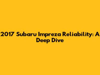 Understanding 2017 Subaru Impreza Reliability