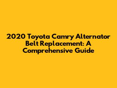 Replacing the alternator belt on your 2020 Toyota Camry is a manageable task with the right knowledge and tools. By following this guide and keeping the pro tips in mind, you can save money and keep your Camry running smoothly. Remember, regular maintenance is key to prolonging the life of your vehicle and preventing unexpected breakdowns. So, inspect your alternator belt regularly and replace it when necessary. Happy driving!