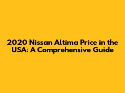 2020 Nissan Altima Price In The USA: A Comprehensive Guide