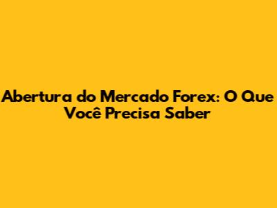 Abertura Do Mercado Forex: O Que Você Precisa Saber