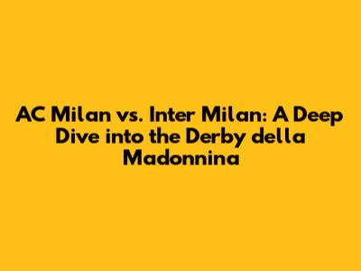 Hey guys! Let's dive headfirst into one of the most electrifying rivalries in the world of football: the Derby della Madonnina, pitting the legendary AC Milan against their fierce rivals, Inter Milan. This isn't just a game; it's a clash of titans, a battle for Milanese supremacy, and a showcase of passion that ignites the city and captivates fans globally. We're going to break down everything from the history and key players to the tactical battles and unforgettable moments that make this derby so special. Buckle up, because we're about to embark on a journey through the heart of Italian football!