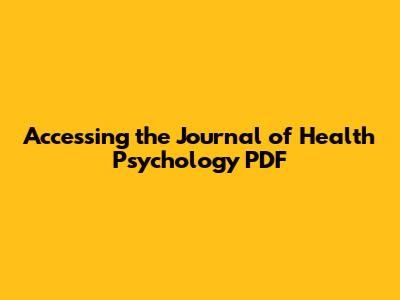 Accessing The Journal Of Health Psychology PDF