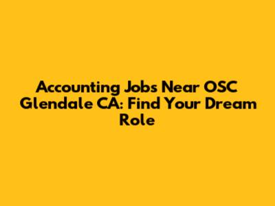 Accounting Jobs Near OSC Glendale CA: Find Your Dream Role