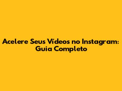 Acelere Seus Vídeos No Instagram: Guia Completo