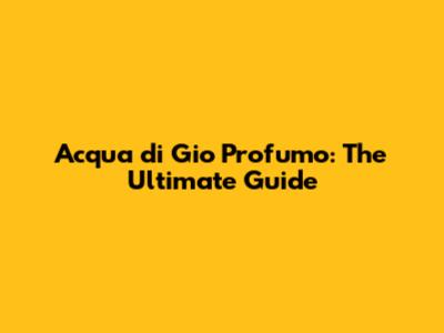 Acqua Di Gio Profumo: The Ultimate Guide