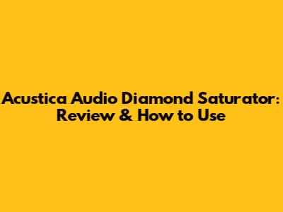 Acustica Audio Diamond Saturator: Review & How To Use