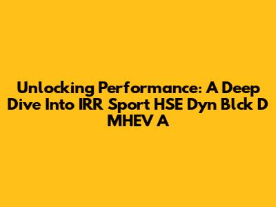 Unlocking Performance: A Deep Dive Into IRR Sport HSE Dyn Blck D MHEV A