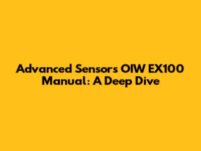 The Advanced Sensors OIW EX100 manual is your comprehensive guide to understanding, operating, and maintaining this sophisticated sensor. By taking the time to read and understand the manual, you can ensure that you get the most out of your equipment and obtain accurate, reliable data for years to come. So, grab a cup of coffee, settle in, and get ready to become an OIW EX100 expert! Good luck, and happy sensing!
