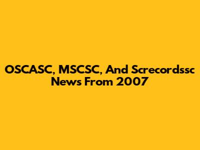 OSCASC, MSCSC, And Screcordssc News From 2007