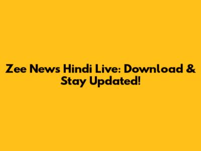 Zee News Hindi Live: Download & Stay Updated!