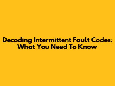 Decoding Intermittent Fault Codes: What You Need To Know