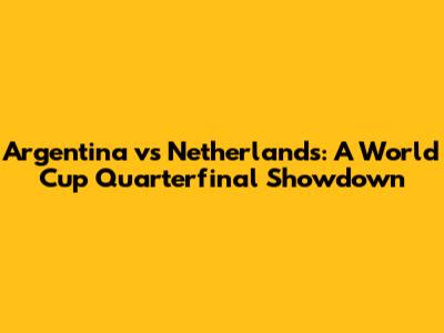 Argentina Vs Netherlands: A World Cup Quarterfinal Showdown