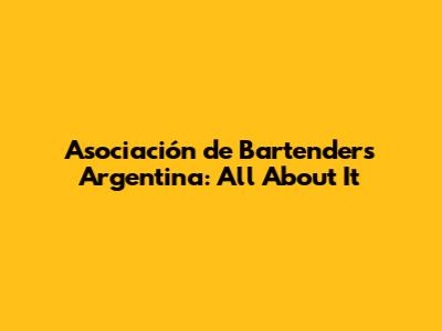 Asociación De Bartenders Argentina: All About It