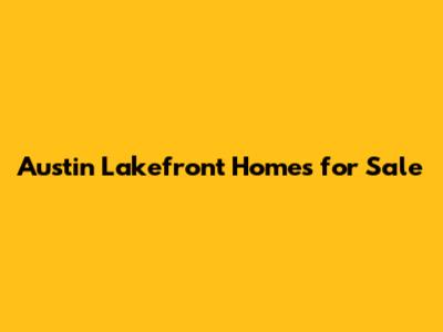 Austin Lakefront Homes For Sale