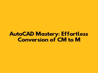 AutoCAD Mastery: Effortless Conversion Of CM To M