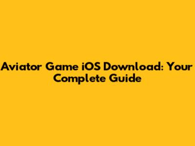 Aviator Game IOS Download: Your Complete Guide