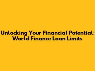 Unlocking Your Financial Potential: World Finance Loan Limits