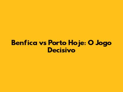 Benfica Vs Porto Hoje: O Jogo Decisivo