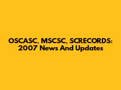 OSCASC, MSCSC, SCRECORDS: 2007 News And Updates