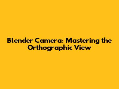 Blender Camera: Mastering The Orthographic View
