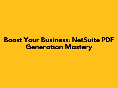 Boost Your Business: NetSuite PDF Generation Mastery