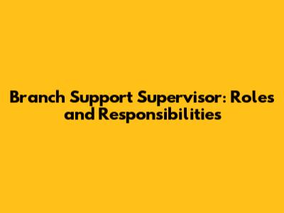 Branch Support Supervisor: Roles And Responsibilities