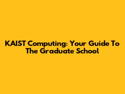 KAIST Computing: Your Guide To The Graduate School