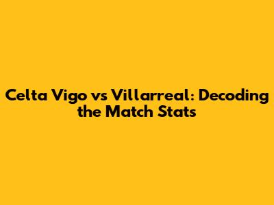 Celta Vigo Vs Villarreal: Stats, Analysis & Predictions