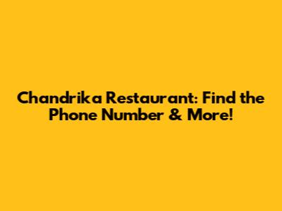 Chandrika Restaurant: Find The Phone Number & More!