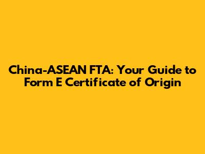 China-ASEAN FTA: Your Guide To Form E Certificate Of Origin