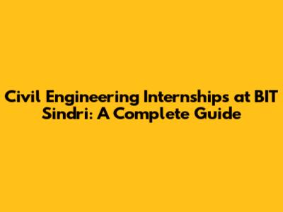 Civil Engineering Internships At BIT Sindri: A Complete Guide