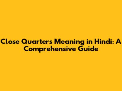 Close Quarters Meaning In Hindi: A Comprehensive Guide