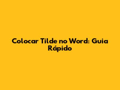 Colocar Tilde No Word: Guia Rápido