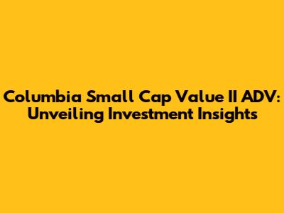 Hey guys! Today, we're diving deep into the Columbia Small Cap Value II ADV, an investment vehicle that's been making waves in the financial world. If you're looking to understand what this fund is all about, how it operates, and whether it aligns with your investment goals, you're in the right place. Let's get started with a comprehensive look at this fund, breaking down its key components and offering some easy-to-understand insights.