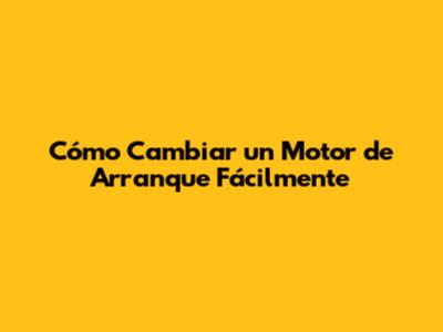 Cómo Cambiar Un Motor De Arranque Fácilmente