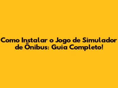 Como Instalar O Jogo De Simulador De Ônibus: Guia Completo!