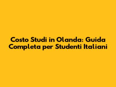 Costo Studi In Olanda: Guida Completa Per Studenti Italiani