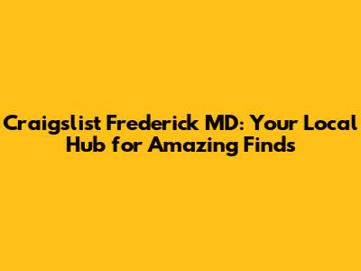 Craigslist Frederick MD: Your Local Hub For Amazing Finds