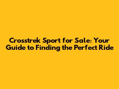 Crosstrek Sport For Sale: Your Guide To Finding The Perfect Ride