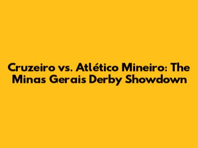 Cruzeiro vs. Atlético Mineiro: The Minas Gerais Derby Showdown