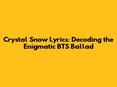 Crystal Snow Lyrics: Decoding The Enigmatic BTS Ballad